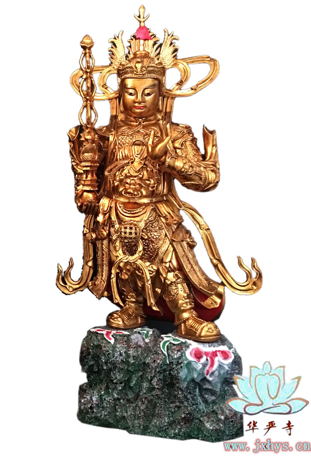 华严寺预恭请一尊韦驮菩萨。香樟木材质,高1.6米,全身贴金。总功德金为三万六千元。大众可以随喜发心。