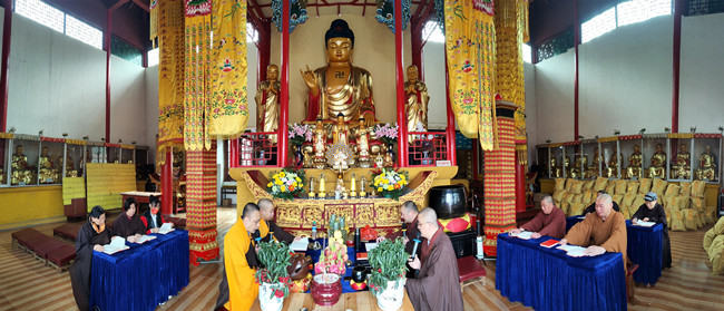法会期间,诵读《地藏菩萨本愿经》,将此诵经之功德布施回向发愿同修,祭奠离难众生和十方善信之已故先人,籍佛、法、僧三宝的慈悲加持及与会大众诵经、忏悔、发愿的清净功德,回向先灵超生净土,阳上增福增慧。